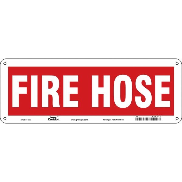 Safety Sign, Vertical Rectangle, Number of Printed Sides 1, English, Sign Format Other Format, Sign Legend Fire Hose, Sign Legend Background Color Red, White, Sign Legend Style Text