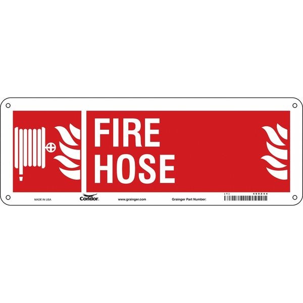 Safety Sign, Vertical Rectangle, Number of Printed Sides 1, English, Sign Format Other Format, Sign Legend Fire Hose, Sign Legend Background Color Red, White, Sign Legend Style Symbol and Text