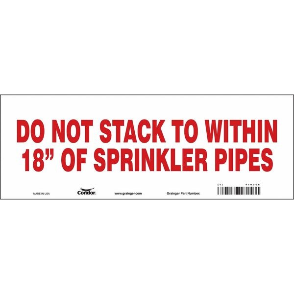 Safety Sign, Vertical Rectangle, Number of Printed Sides 1, English, Sign Format Other Format, Sign Legend Do Not Stack To Within 18 In. Of Sprinkler Pipes, Sign Legend Background Color White, Sign Legend Style Text