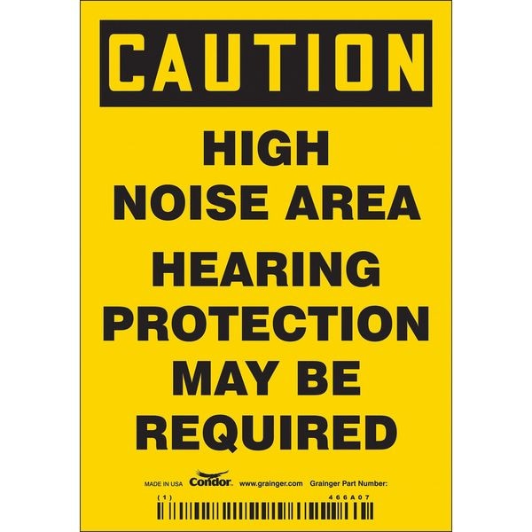 Safety Sign, Vertical Rectangle, Number of Printed Sides 1, English, Sign Format Traditional OSHA, Sign Legend High Noise Area Hearing Protection May Be Required, Sign Legend Background Color Yellow, Sign Legend Style Text