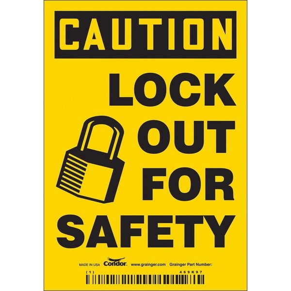Safety Sign, Vertical Rectangle, Number of Printed Sides 1, English, Sign Format Traditional OSHA, Sign Legend Lock Out For Safety, Sign Legend Background Color Yellow, Sign Legend Style Symbol and Text