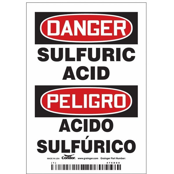 Safety Sign, Vertical Rectangle, Number of Printed Sides 1, Spanish, Sign Format Traditional OSHA, Sign Legend Sulfuric Acid/Acido Sulfurico, Sign Legend Background Color White, Sign Legend Style Text