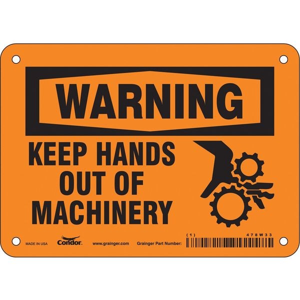 Safety Sign, Horizontal Rectangle, Number of Printed Sides 1, English, Sign Format Traditional OSHA, Sign Legend Keep Hands Out Of Machinery, Sign Legend Background Color Orange, Sign Legend Style Symbol and Text