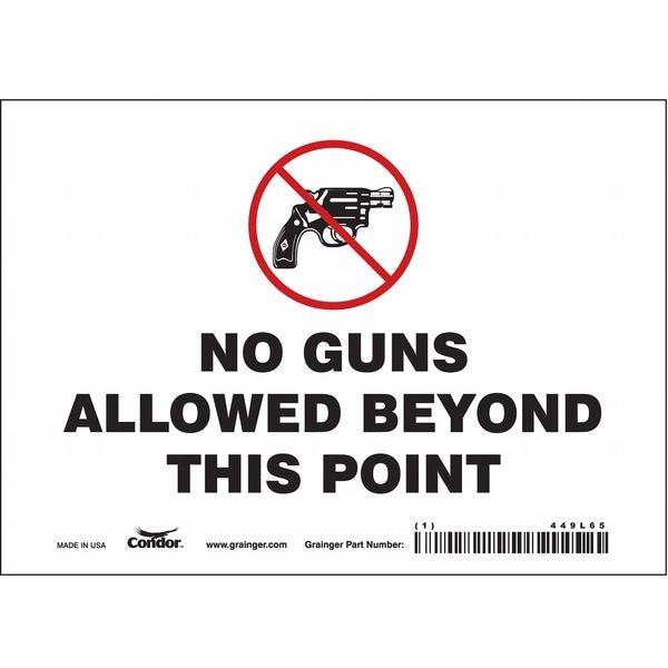 Safety Sign, Horizontal Rectangle, Number of Printed Sides 1, English, Sign Legend No Guns Allowed Beyond This Point, Sign Legend Background Color White, Sign Legend Style Symbol and Text