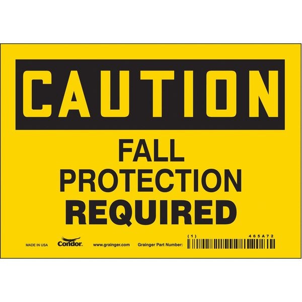 Safety Sign, Horizontal Rectangle, Number of Printed Sides 1, English, Sign Format Traditional OSHA, Sign Legend Fall Protection Required, Sign Legend Background Color Yellow, Sign Legend Style Text