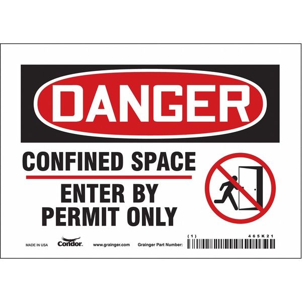 Safety Sign, Horizontal Rectangle, Number of Printed Sides 1, English, Sign Format Traditional OSHA, Sign Legend Confined Space Enter By Permit Only, Sign Legend Background Color White, Sign Legend Style Symbol and Text