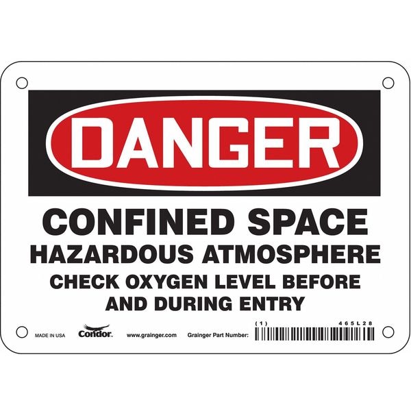 Safety Sign, Horizontal Rectangle, Number of Printed Sides 1, English, Sign Format Traditional OSHA, Sign Legend Confined Space Hazardous Atmosphere Check Oxygen Level Before And During Entry, Sign Legend Background Color White, Sign Legend Style Text