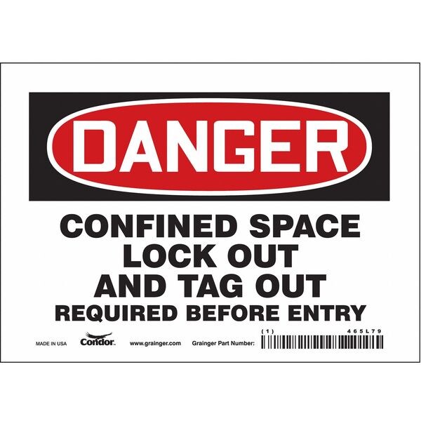 Safety Sign, Horizontal Rectangle, Number of Printed Sides 1, English, Sign Format Traditional OSHA, Sign Legend Confined Space Lock Out And Tag Out Required Before Entry, Sign Legend Background Color White, Sign Legend Style Text