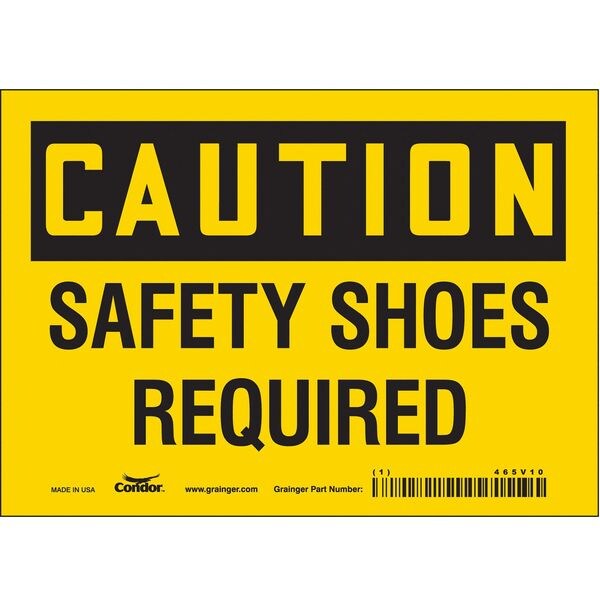Safety Sign, Horizontal Rectangle, Number of Printed Sides 1, English, Sign Format Traditional OSHA, Sign Legend Safety Shoes Required, Sign Legend Background Color Yellow, Sign Legend Style Text