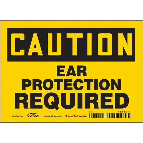 Safety Sign, Horizontal Rectangle, Number of Printed Sides 1, English, Sign Format Traditional OSHA, Sign Legend Ear Protection Required, Sign Legend Background Color Yellow, Sign Legend Style Text