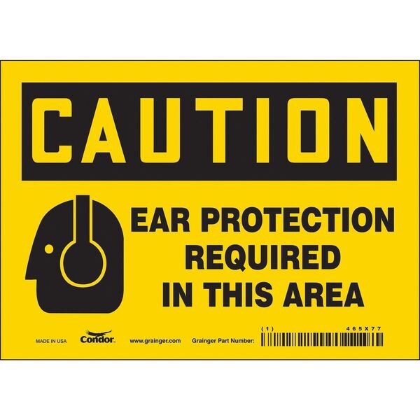 Safety Sign, Horizontal Rectangle, Number of Printed Sides 1, English, Sign Format Traditional OSHA, Sign Legend Ear Protection Required In This Area, Sign Legend Background Color Yellow, Sign Legend Style Symbol and Text