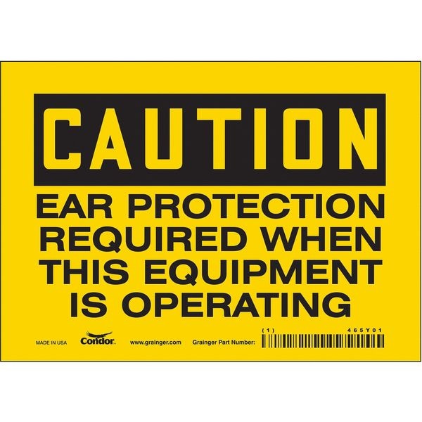 Safety Sign, Horizontal Rectangle, Number of Printed Sides 1, English, Sign Format Traditional OSHA, Sign Legend Ear Protection Required When This Equipment Is Operating, Sign Legend Background Color Yellow, Sign Legend Style Text