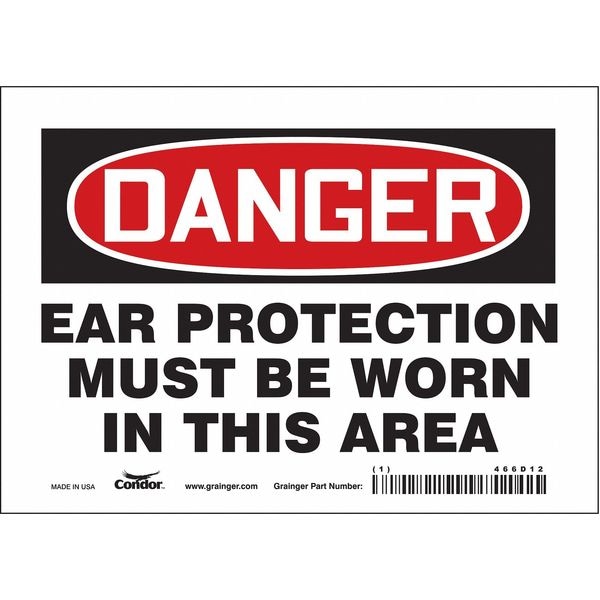 Safety Sign, Horizontal Rectangle, Number of Printed Sides 1, English, Sign Format Traditional OSHA, Sign Legend Ear Protection Must Be Worn In This Area, Sign Legend Background Color White, Sign Legend Style Text