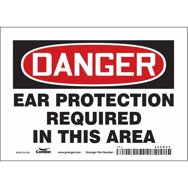 Safety Sign, Horizontal Rectangle, Number of Printed Sides 1, English, Sign Format Traditional OSHA, Sign Legend Ear Protection Required In This Area, Sign Legend Background Color White, Sign Legend Style Text