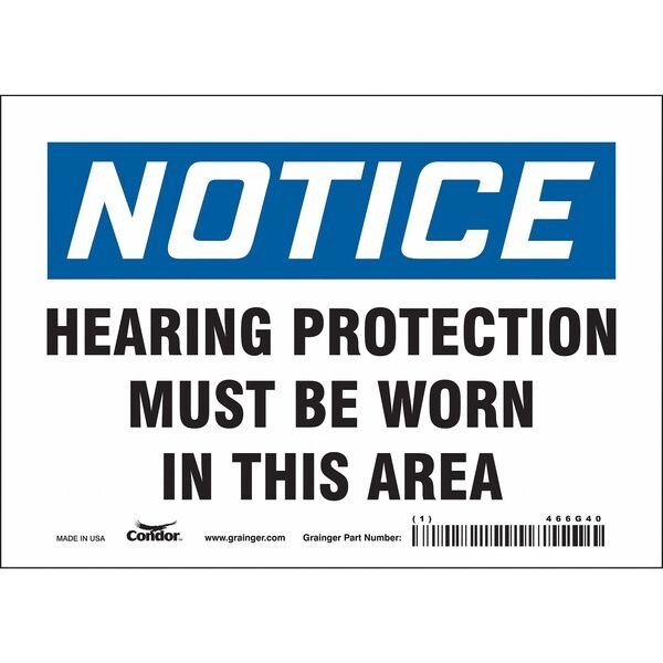 Safety Sign, Horizontal Rectangle, Number of Printed Sides 1, English, Sign Format Traditional OSHA, Sign Legend Hearing Protection Must Be Worn In This Area, Sign Legend Background Color White, Sign Legend Style Text