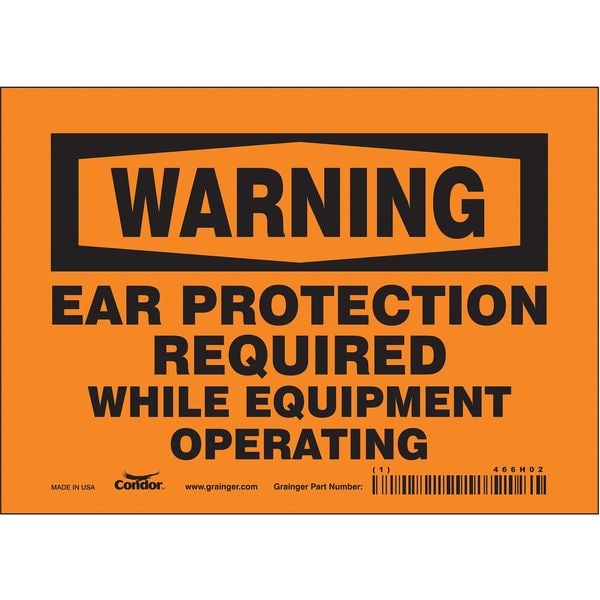 Safety Sign, Horizontal Rectangle, Number of Printed Sides 1, English, Sign Format Traditional OSHA, Sign Legend Ear Protection Required While Equipment Operating, Sign Legend Background Color Orange, Sign Legend Style Text