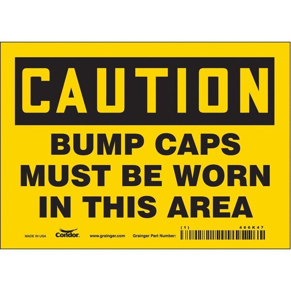 Safety Sign, Horizontal Rectangle, Number of Printed Sides 1, English, Sign Format Traditional OSHA, Sign Legend Bump Caps Must Be Worn In This Area, Sign Legend Background Color Yellow, Sign Legend Style Text