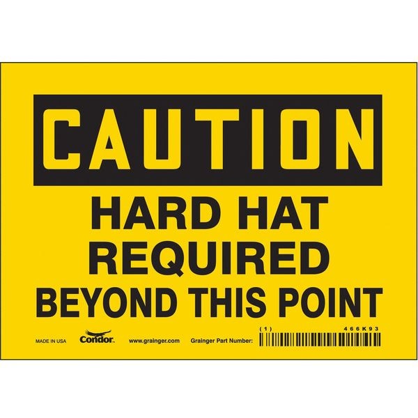 Safety Sign, Horizontal Rectangle, Number of Printed Sides 1, English, Sign Format Traditional OSHA, Sign Legend Hard Hat Required Beyond This Point, Sign Legend Background Color Yellow, Sign Legend Style Text