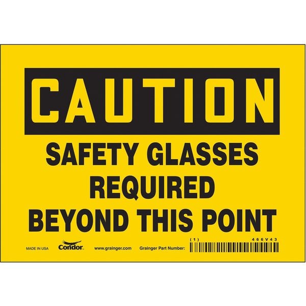 Safety Sign, Horizontal Rectangle, Number of Printed Sides 1, English, Sign Format Traditional OSHA, Sign Legend Safety Glasses Required Beyond This Point, Sign Legend Background Color Yellow, Sign Legend Style Text