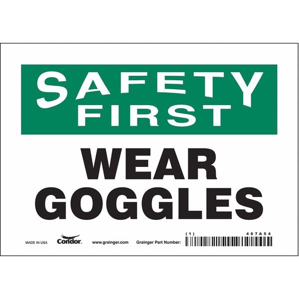Safety Sign, Horizontal Rectangle, Number of Printed Sides 1, English, Sign Format Traditional OSHA, Sign Legend Wear Goggles, Sign Legend Background Color White, Sign Legend Style Text