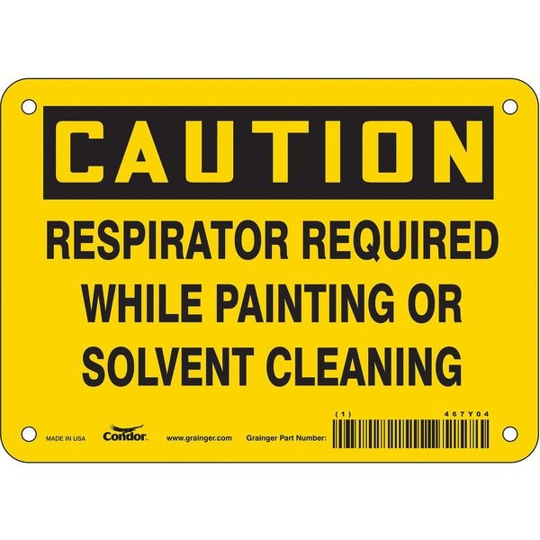 Safety Sign, Horizontal Rectangle, Number of Printed Sides 1, English, Sign Format Traditional OSHA, Sign Legend Respirator Required While Painting Or Solvent Cleaning, Sign Legend Background Color Yellow, Sign Legend Style Text