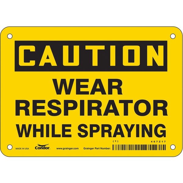 Safety Sign, Horizontal Rectangle, Number of Printed Sides 1, English, Sign Format Traditional OSHA, Sign Legend Wear Respirator While Spraying, Sign Legend Background Color Yellow, Sign Legend Style Text