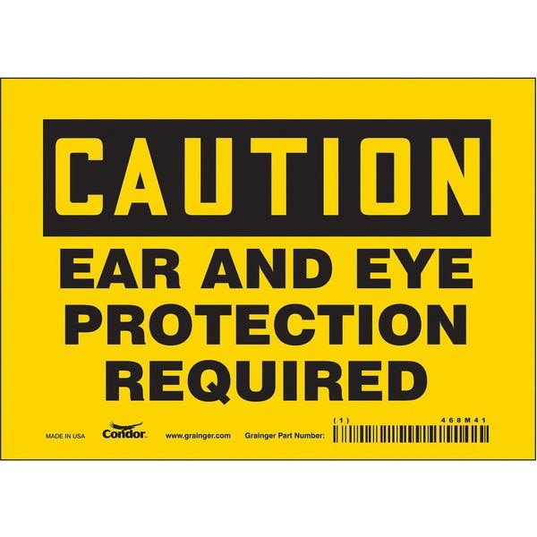 Safety Sign, Horizontal Rectangle, Number of Printed Sides 1, English, Sign Format Traditional OSHA, Sign Legend Ear And Eye Protection Required, Sign Legend Background Color Yellow, Sign Legend Style Text