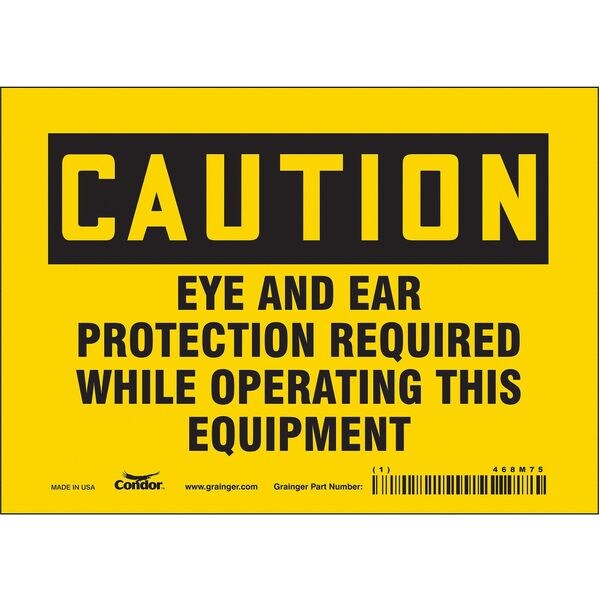 Safety Sign, Horizontal Rectangle, Number of Printed Sides 1, English, Sign Format Traditional OSHA, Sign Legend Eye And Ear Protection Required While Operating This Equipment, Sign Legend Background Color Yellow, Sign Legend Style Text