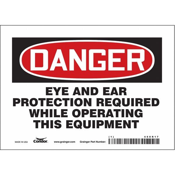 Safety Sign, Horizontal Rectangle, Number of Printed Sides 1, English, Sign Format Traditional OSHA, Sign Legend Eye And Ear Protection Required While Operating This Equipment, Sign Legend Background Color White, Sign Legend Style Text