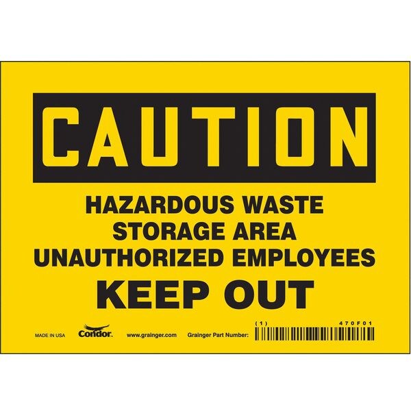 Safety Sign, Horizontal Rectangle, Number of Printed Sides 1, English, Sign Format Traditional OSHA, Sign Legend Hazardous Waste Storage Area Unauthorized Employees Keep Out, Sign Legend Background Color Yellow, Sign Legend Style Text