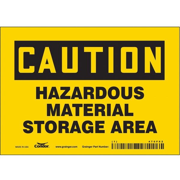 Safety Sign, Horizontal Rectangle, Number of Printed Sides 1, English, Sign Format Traditional OSHA, Sign Legend Hazardous Material Storage Area, Sign Legend Background Color Yellow, Sign Legend Style Text