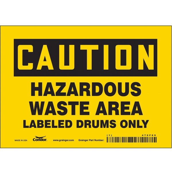 Safety Sign, Horizontal Rectangle, Number of Printed Sides 1, English, Sign Format Traditional OSHA, Sign Legend Hazardous Waste Area Labeled Drums Only, Sign Legend Background Color Yellow, Sign Legend Style Text