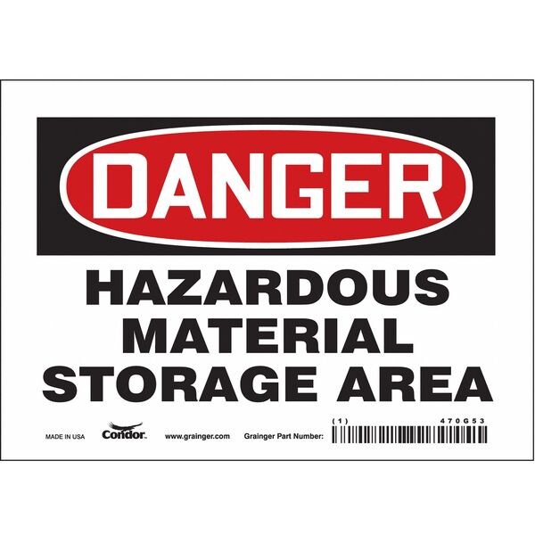 Safety Sign, Horizontal Rectangle, Number of Printed Sides 1, English, Sign Format Traditional OSHA, Sign Legend Hazardous Material Storage Area, Sign Legend Background Color White, Sign Legend Style Text