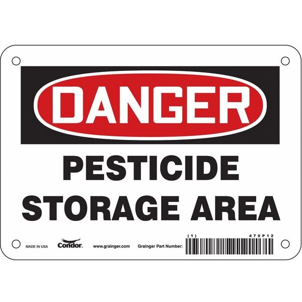 Safety Sign, Horizontal Rectangle, Number of Printed Sides 1, English, Sign Format Traditional OSHA, Sign Legend Pesticide Storage Area, Sign Legend Background Color White, Sign Legend Style Text