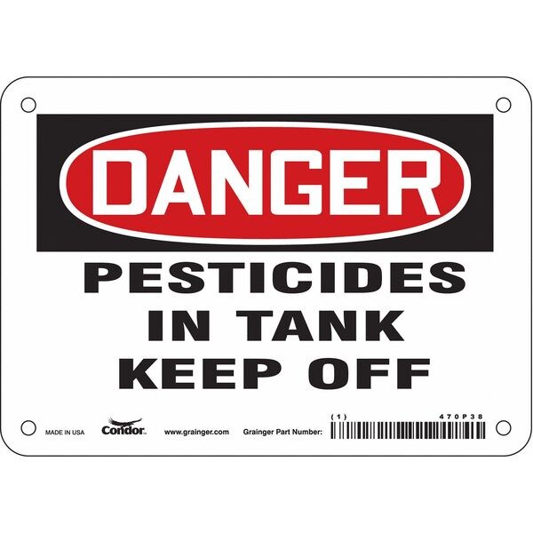 Safety Sign, Horizontal Rectangle, Number of Printed Sides 1, English, Sign Format Traditional OSHA, Sign Legend Pesticides In Tank Keep Off, Sign Legend Background Color White, Sign Legend Style Text