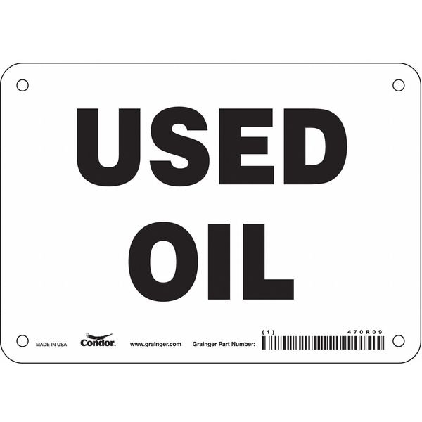 Safety Sign, Horizontal Rectangle, Number of Printed Sides 1, English, Sign Format Other Format, Sign Legend Used Oil, Sign Legend Background Color White, Sign Legend Style Text