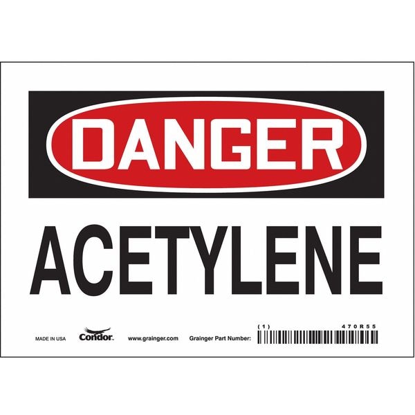 Safety Sign, Horizontal Rectangle, Number of Printed Sides 1, English, Sign Format Traditional OSHA, Sign Legend Acetylene, Sign Legend Background Color White, Sign Legend Style Text