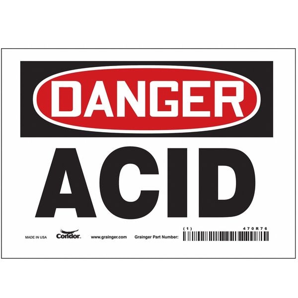 Safety Sign, Horizontal Rectangle, Number of Printed Sides 1, English, Sign Format Traditional OSHA, Sign Legend Acid, Sign Legend Background Color White, Sign Legend Style Text