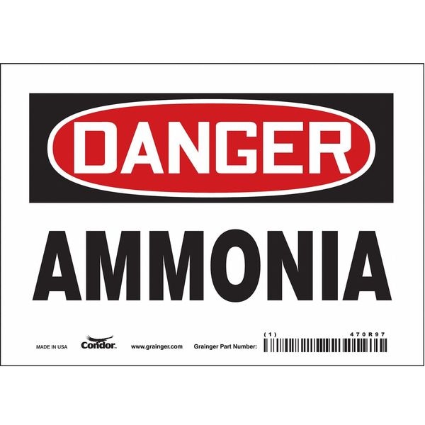 Safety Sign, Horizontal Rectangle, Number of Printed Sides 1, English, Sign Format Traditional OSHA, Sign Legend Ammonia, Sign Legend Background Color White, Sign Legend Style Text
