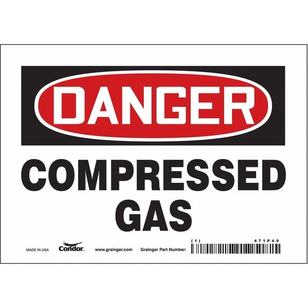 Safety Sign, Horizontal Rectangle, Number of Printed Sides 1, English, Sign Format Traditional OSHA, Sign Legend Compressed Gas, Sign Legend Background Color White, Sign Legend Style Text