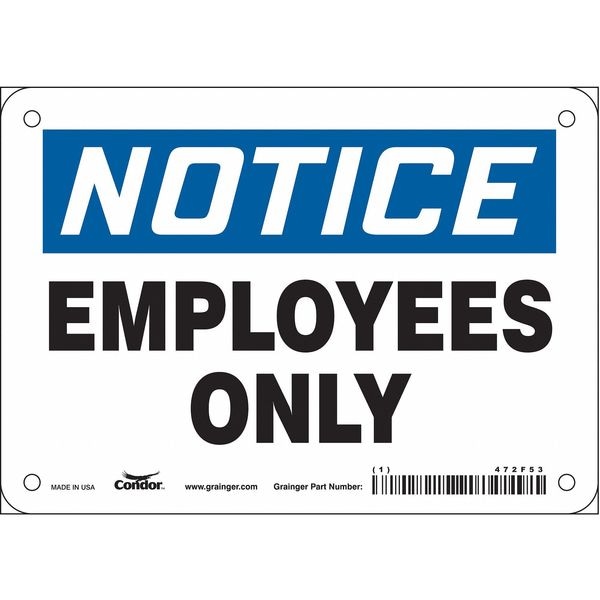 Safety Sign, Horizontal Rectangle, Number of Printed Sides 1, English, Sign Format Traditional OSHA, Sign Legend Employees Only, Sign Legend Background Color White, Sign Legend Style Text