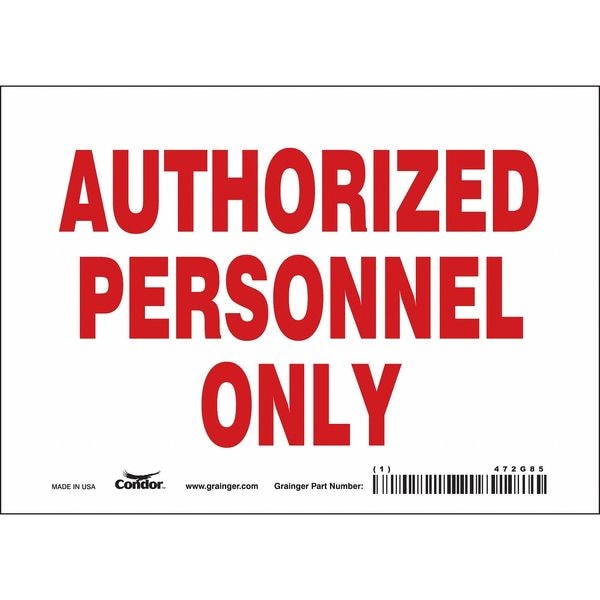 Safety Sign, Horizontal Rectangle, Number of Printed Sides 1, English, Sign Format Other Format, Sign Legend Authorized Personnel Only, Sign Legend Background Color White, Sign Legend Style Text