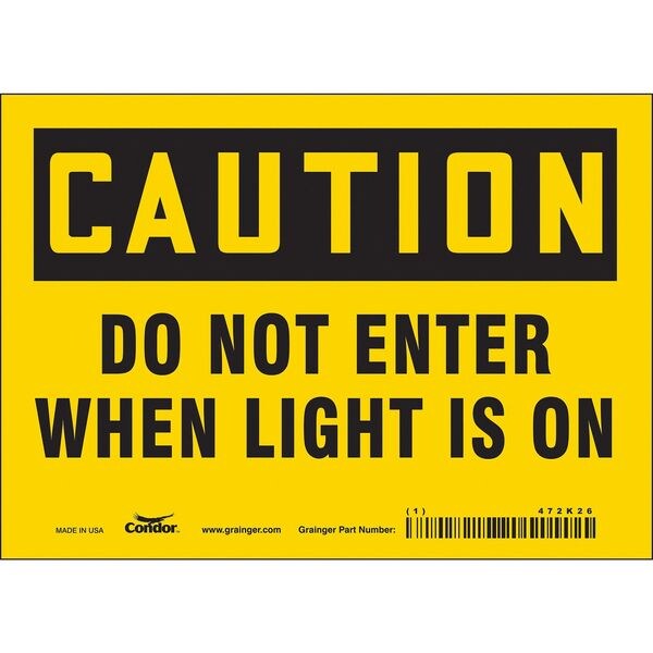 Safety Sign, Horizontal Rectangle, Number of Printed Sides 1, English, Sign Format Traditional OSHA, Sign Legend Do Not Enter When Light Is On, Sign Legend Background Color Yellow, Sign Legend Style Text