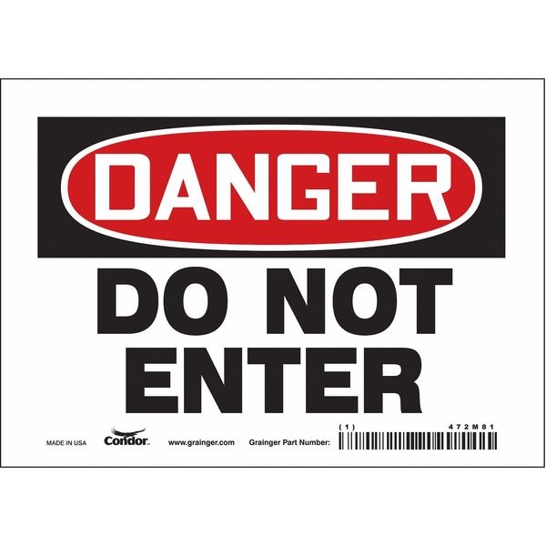 Safety Sign, Horizontal Rectangle, Number of Printed Sides 1, English, Sign Format Traditional OSHA, Sign Legend Do Not Enter, Sign Legend Background Color White, Sign Legend Style Text