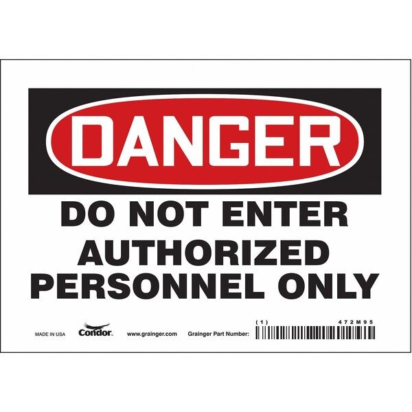 Safety Sign, Horizontal Rectangle, Number of Printed Sides 1, English, Sign Format Traditional OSHA, Sign Legend Do Not Enter Authorized Personnel Only, Sign Legend Background Color White, Sign Legend Style Text