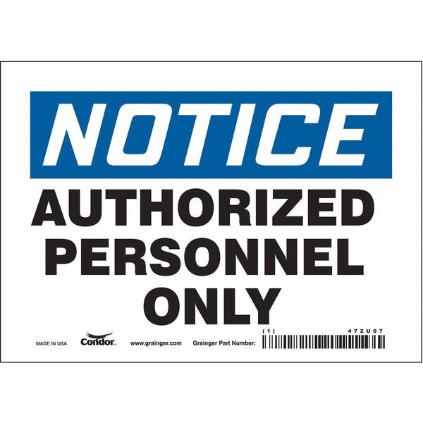 Safety Sign, Horizontal Rectangle, Number of Printed Sides 1, English, Sign Format Traditional OSHA, Sign Legend Authorized Personnel Only, Sign Legend Background Color White, Sign Legend Style Text