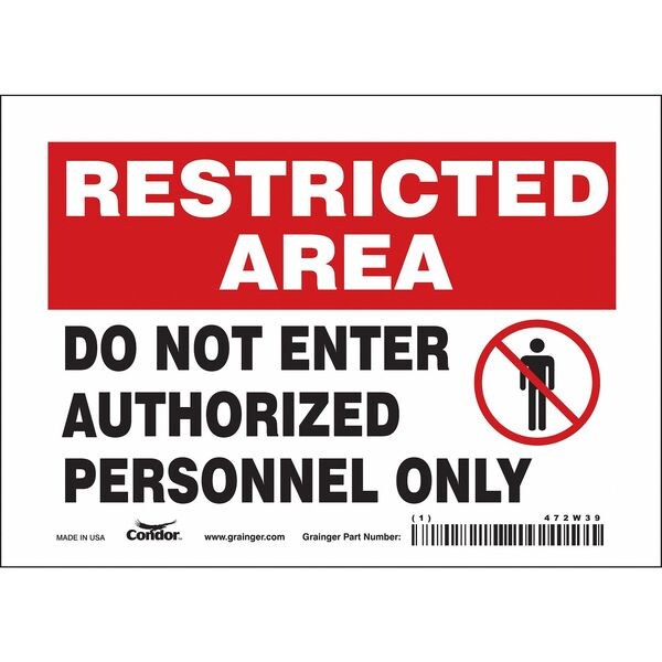 Safety Sign, Horizontal Rectangle, Number of Printed Sides 1, English, Sign Format Other Format, Sign Legend Do Not Enter Authorized Personnel Only, Sign Legend Background Color Red, White, Sign Legend Style Symbol and Text