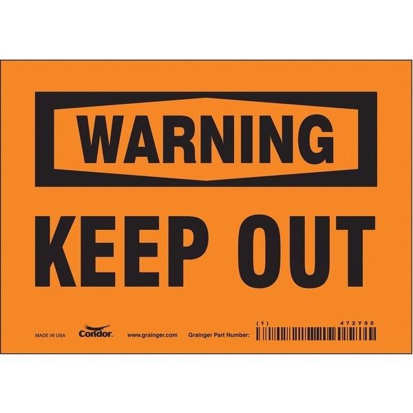 Safety Sign, Horizontal Rectangle, Number of Printed Sides 1, English, Sign Format Traditional OSHA, Sign Legend Keep Out, Sign Legend Background Color Orange, Sign Legend Style Text