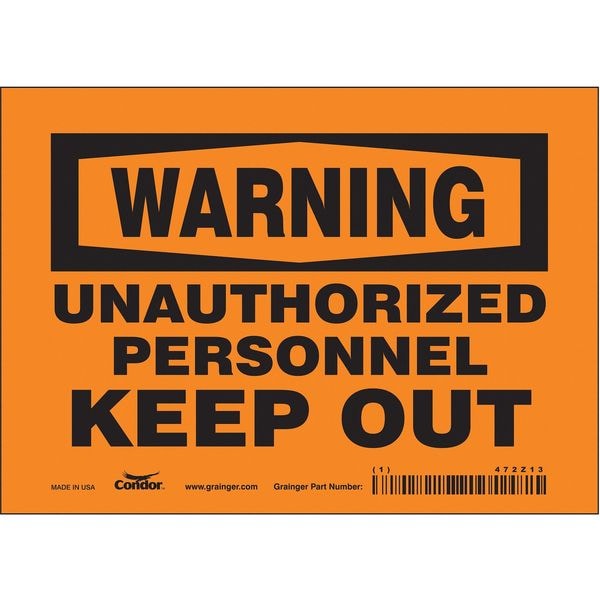 Safety Sign, Horizontal Rectangle, Number of Printed Sides 1, English, Sign Format Traditional OSHA, Sign Legend Unauthorized Personnel Keep Out, Sign Legend Background Color Orange, Sign Legend Style Text