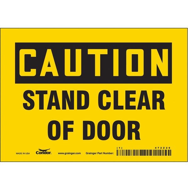 Safety Sign, Horizontal Rectangle, Number of Printed Sides 1, English, Sign Format Traditional OSHA, Sign Legend Stand Clear Of Door, Sign Legend Background Color Yellow, Sign Legend Style Text